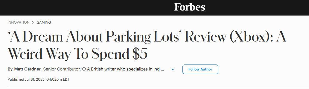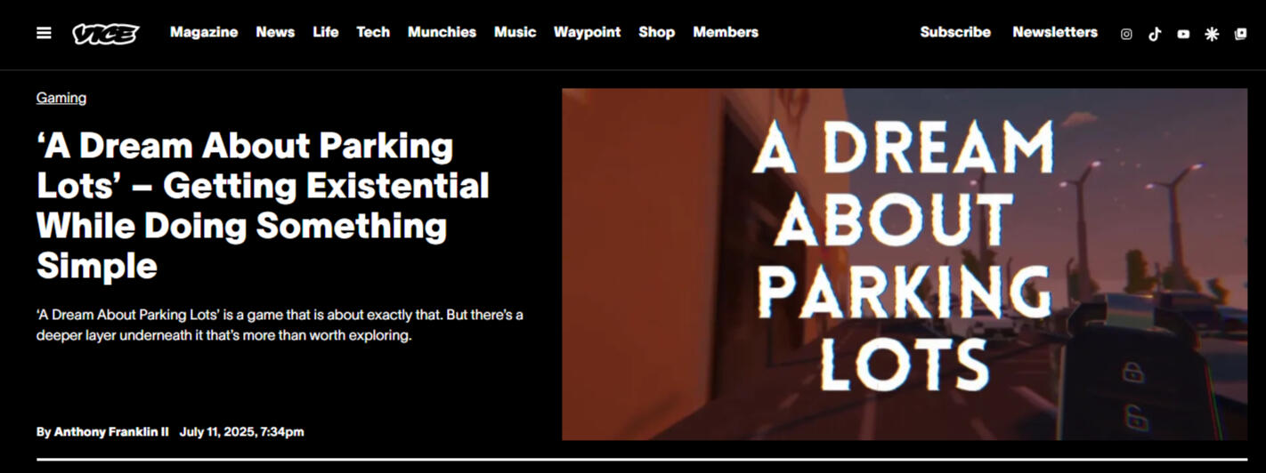 The YouTube Channel "Wavelengths" placed "A Dream About Parking Lots" at number 32 in his Top 50 Best Games of 2025 list!Watch