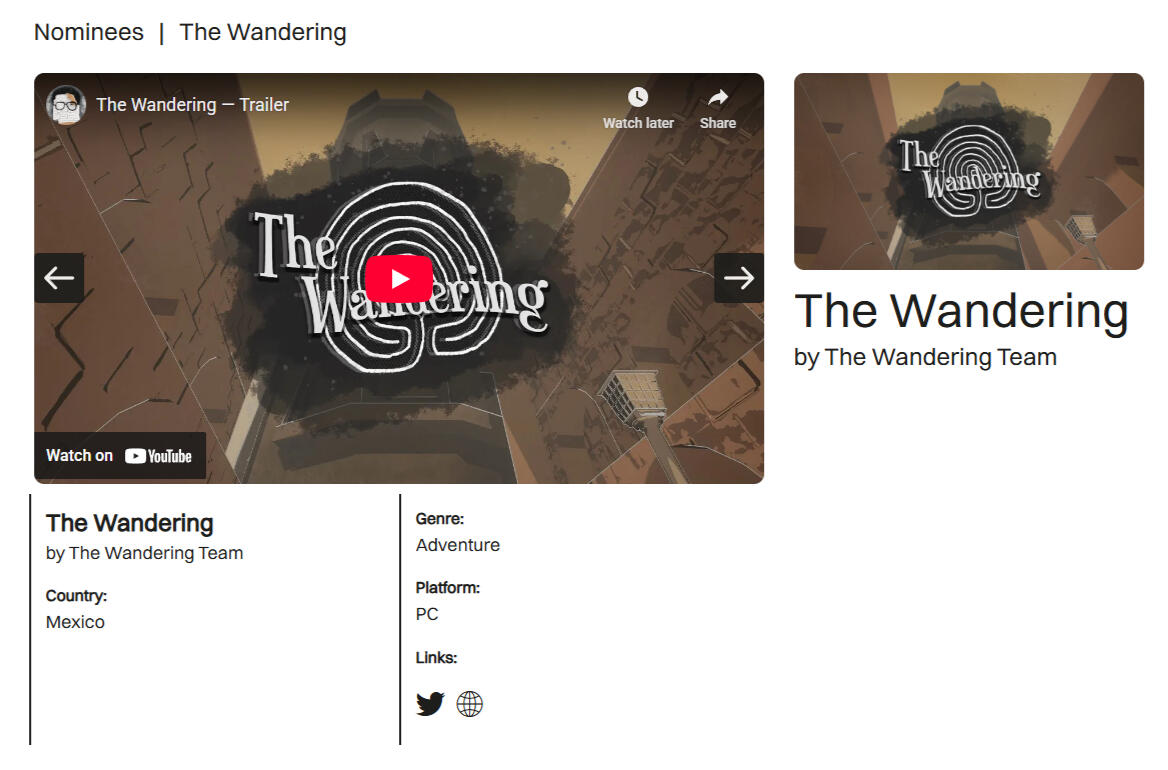 "The Wandering", a pre-Interactive Dreams game from Luis León, was nominated at the AMAZE Awards in 2024 for the "Digital Moment" category. This was a foundational moment for this studio!See